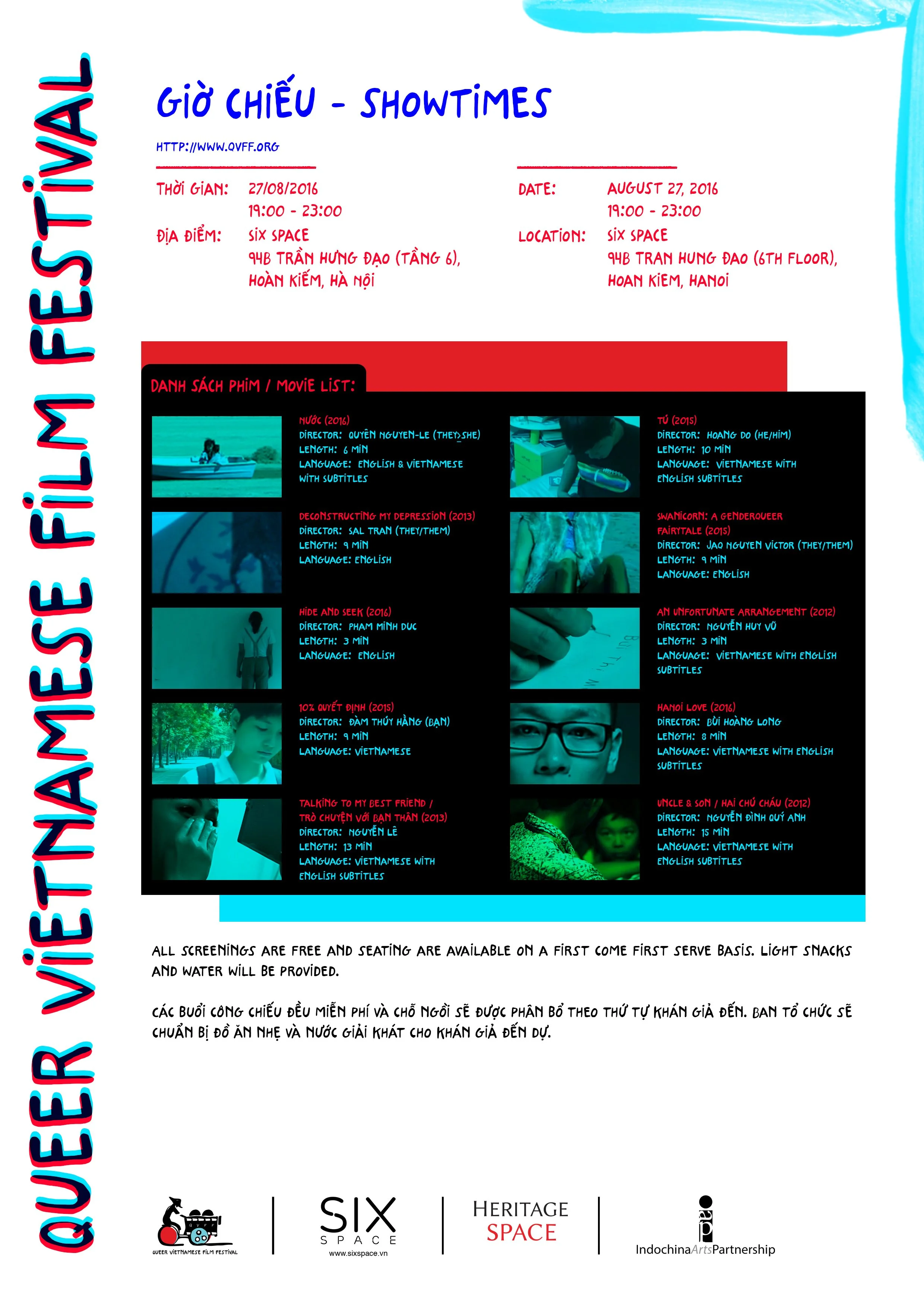 Established in 2016 by Cici Nguyen and Aiden Nguyen, the Queer Vietnamese Film Festival (QVFF) is an independent film fest dedicated to celebrating the artistic and cultural contributions of the LGBTQ Vietnamese community within cinema. The festival strives to build community through connecting film-makers and audiences within the homeland and within diaspora communities to discover, discuss and share our stories. We will be screening documentaries, short films, feature films, animations, and anything else where the subject-matter will further contribute to the narratives of queer Vietnamese people.